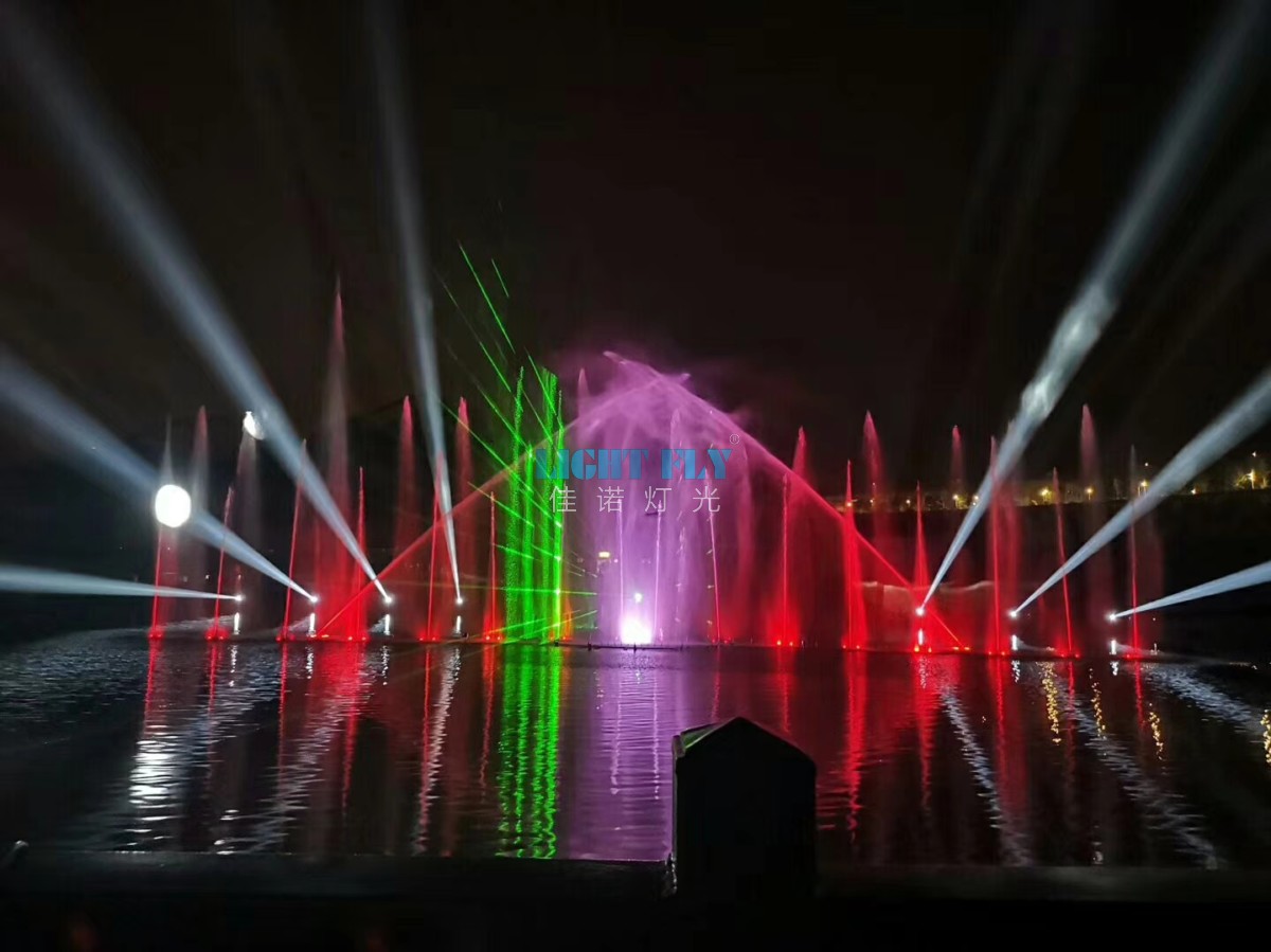 音樂(lè)噴泉激光燈秀是由電腦控制聲、光及噴孔組合而產(chǎn)生不同形狀、不同色彩、配合音樂(lè)節(jié)奏而構(gòu)成的綜合水景。水的形態(tài)會(huì)隨著聲音的抑揚(yáng)頓挫而偏偏起舞,加上燈光的照射,可以形成舞姿優(yōu)美、色彩斑斕的多樣噴泉。 音樂(lè)噴泉是一種聲光電水相互結(jié)合的生機(jī)景象,如詩(shī)如畫(huà),美輪美奐。通過(guò)噴泉表演我們可以得到很多的思維上的凈化,在音樂(lè)背景下,仿佛河水也是有生命的,那縱橫交錯(cuò)的水柱如同音符,絢爛,幻化,各種形容美的詞匯都可以拿過(guò)來(lái)用。 我司從2008年開(kāi)始致力于激光音樂(lè)噴泉的研發(fā)與創(chuàng)新,先后參與了數(shù)百個(gè)音樂(lè)噴泉的創(chuàng)作與實(shí)踐。尤其我司的燈光與噴泉的同步聯(lián)控技術(shù)經(jīng)過(guò)多年的改進(jìn)現(xiàn)已逐步穩(wěn)定,基本實(shí)現(xiàn)零故障。佳諾燈光誠(chéng)邀廣大客戶(hù)朋友前來(lái)我司考察與指導(dǎo),共同打造戶(hù)外亮化景觀!