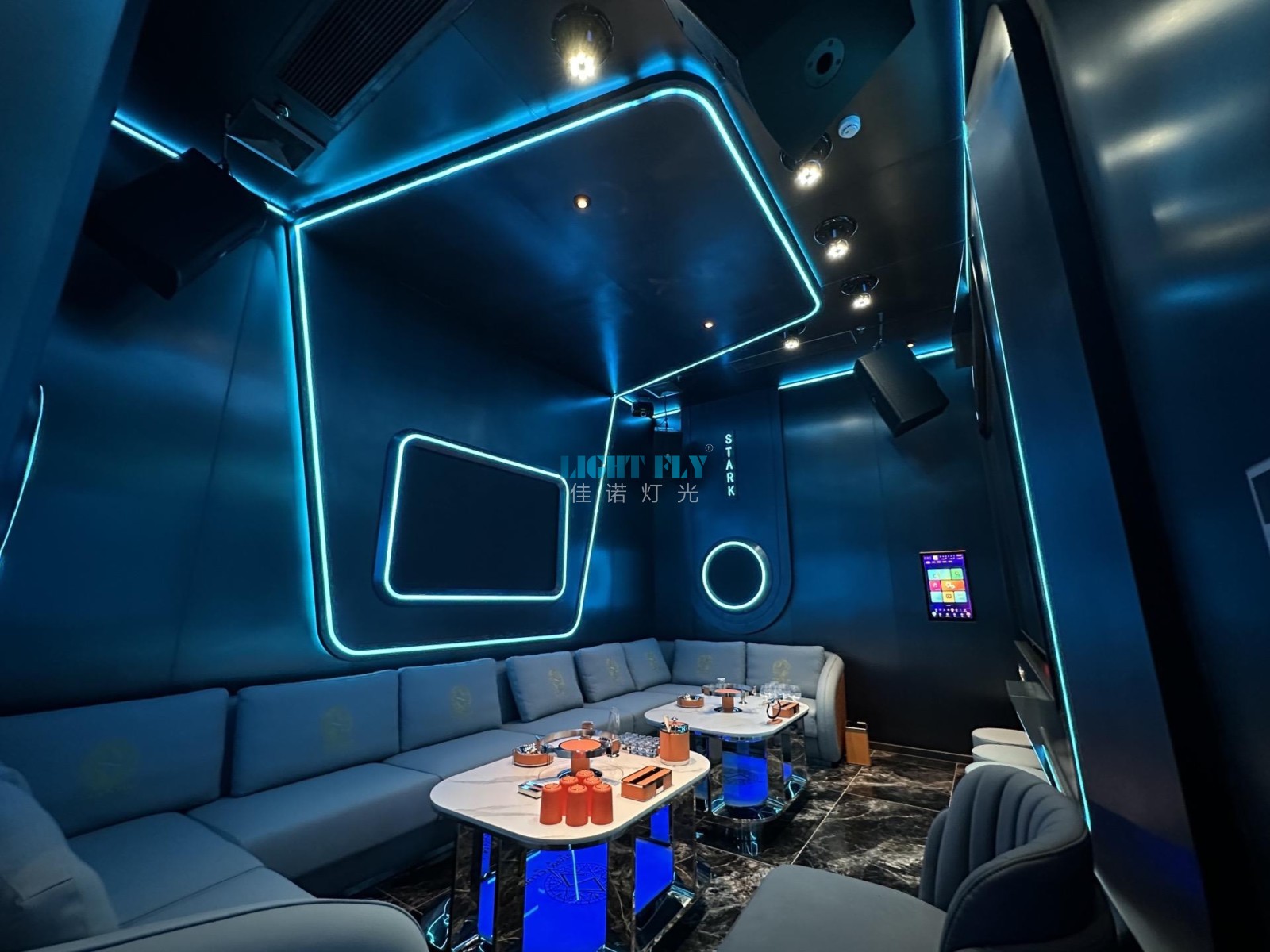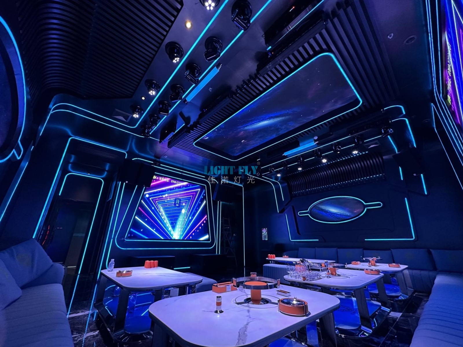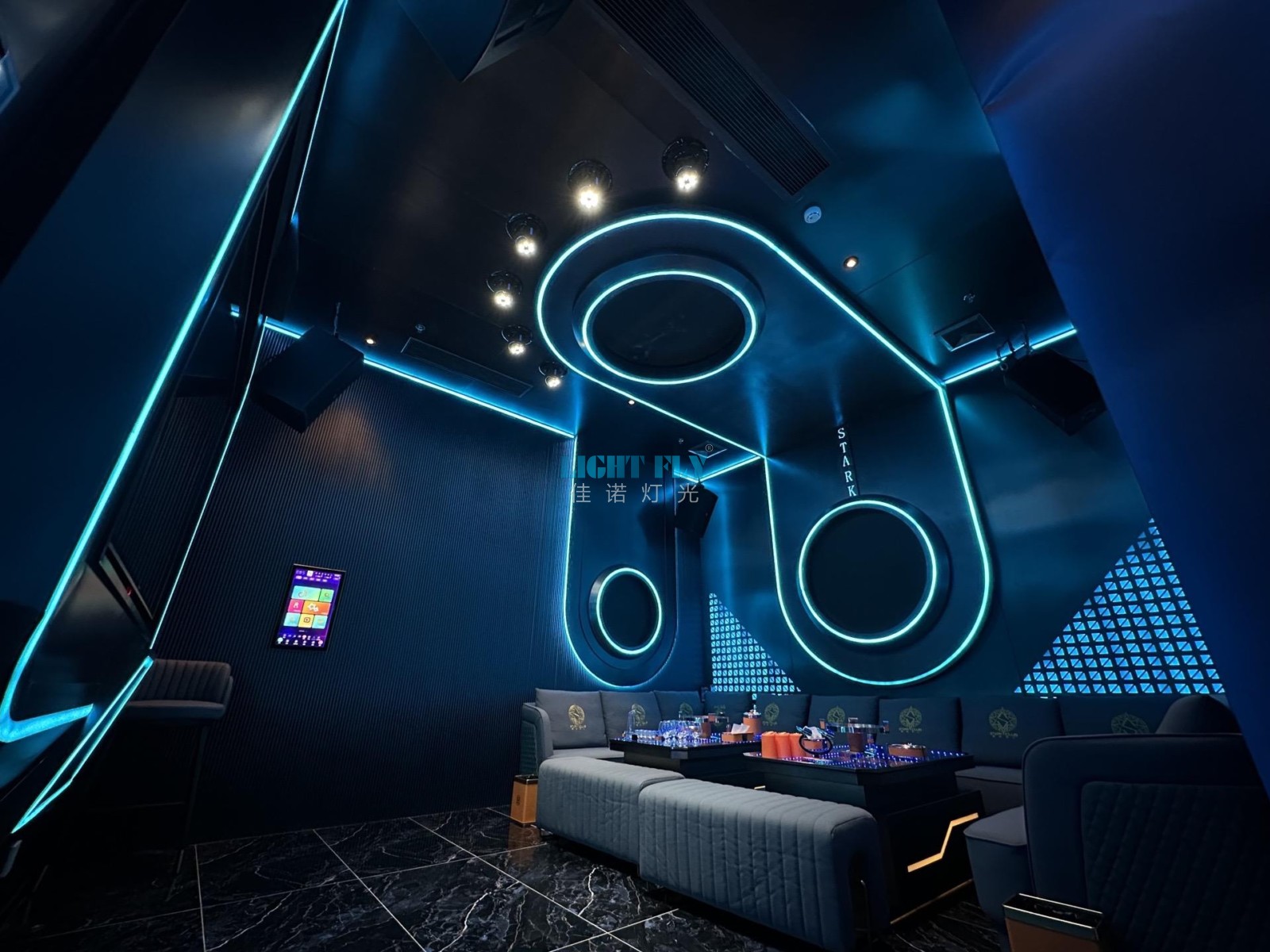 魅KTV有著高顏值,豐富體驗(yàn)和一站式的服務(wù),顯然更值得選擇,總共二十五個(gè)包房全部KTV燈光由佳諾燈光LIGHT FLY設(shè)計(jì)搭配,主要設(shè)置嵌入式150瓦LED搖頭光束燈,嵌入式100瓦LED搖頭圖案燈,嵌入式LED蜂眼燈,嵌入式全彩動(dòng)畫(huà)激光燈,嵌入式LED搖頭染色燈,嵌入式LED蝴蝶燈等各種KTV燈光,通過(guò)觸摸控制平板一鍵式編輯燈光秀,實(shí)現(xiàn)了動(dòng)感,柔和,爆閃等燈光秀,滿(mǎn)足不同客戶(hù)唱歌燈光秀效果,得到了客戶(hù)們一直滿(mǎn)意,廣州佳諾燈光設(shè)備有限公司是一家十五年從事智能化演藝燈光研發(fā)、生產(chǎn)、銷(xiāo)售、服務(wù)于一體的國(guó)家高新技術(shù)企業(yè)。其自主品牌【佳諾燈光LIGHT FLY】產(chǎn)品涵蓋專(zhuān)業(yè)舞臺(tái)燈光、LED演藝照明,文旅亮化等領(lǐng)域,廣泛應(yīng)用于劇院、體育場(chǎng)館、電視臺(tái)及各種演出場(chǎng)所。