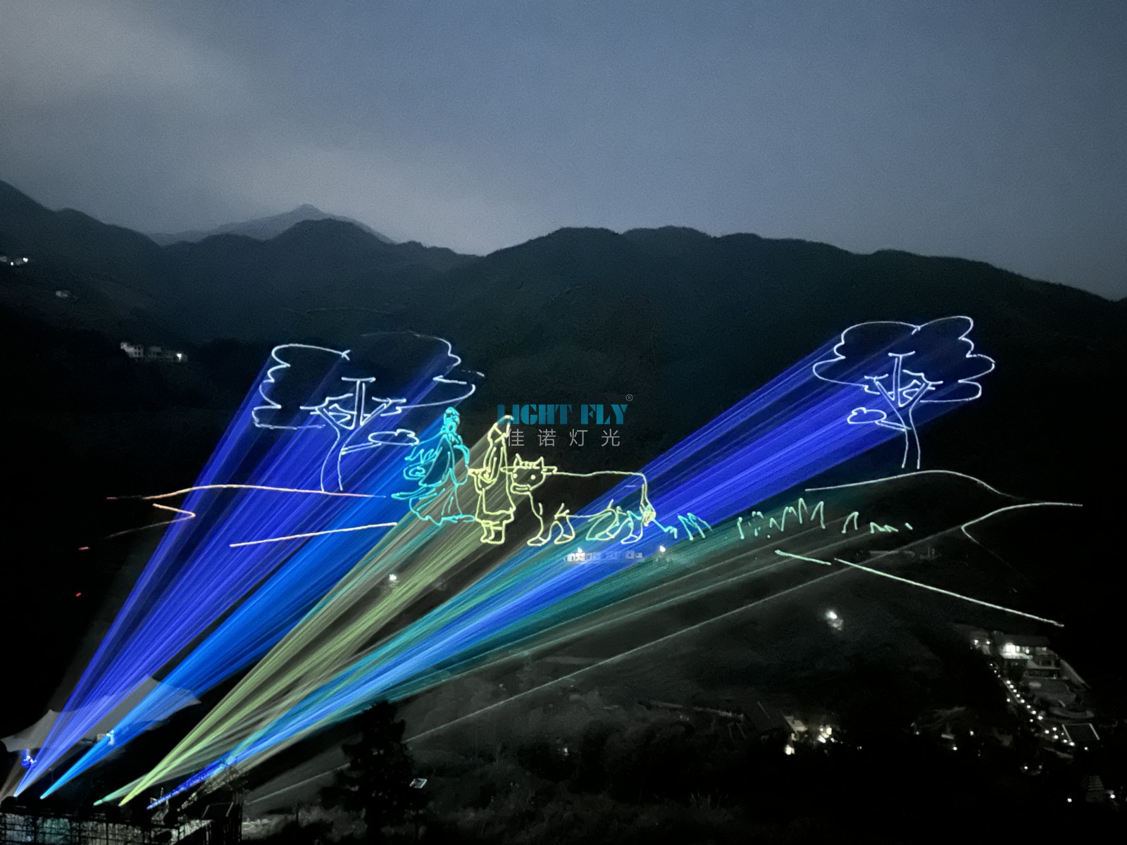 整個(gè)梯田佳諾燈光LIGHT FLY設(shè)計(jì)師采用了10臺(tái)60W防水全彩動(dòng)畫(huà)激光燈通過(guò)BEYOND雕刻激光燈軟件實(shí)現(xiàn)了每臺(tái)獨(dú)立實(shí)現(xiàn)任意的文字與動(dòng)畫(huà)效果,根據(jù)景區(qū)的悠久歷史特色,刻畫(huà)了相應(yīng)的精彩絕倫的動(dòng)畫(huà)與文字結(jié)合,讓每位來(lái)景區(qū)游玩的游客夜晚感受激光秀的魅力,了解梯田歷史的底蘊(yùn),廣州佳諾燈光設(shè)備有限公司是一家十六年從事智能化演藝燈光研發(fā)、生產(chǎn)、銷售、服務(wù)于一體的國(guó)家高新技術(shù)企業(yè)。其自主品牌【佳諾燈光LIGHT FLY】產(chǎn)品涵蓋專業(yè)舞臺(tái)燈光、LED演藝照明,文旅亮化等領(lǐng)域,廣泛應(yīng)用于劇院、體育場(chǎng)館、電視臺(tái)及各種演出場(chǎng)所。