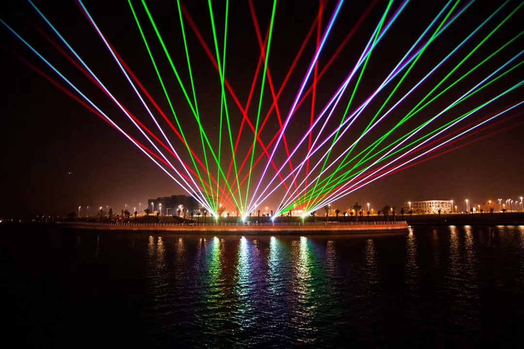 激光的色彩純正,光束掃描過程莊重。表演型激光地標:激光束經(jīng)過高速機械掃描器發(fā)射,可以將單束激光束擴展成多束,在計算機光學系統(tǒng)的控制下,形成花樣繁多的輸出方式,可以實現(xiàn)多光束的翻滾、變幻,可以和音樂同步,可以在建筑立面、甚至云層上寫簡單的文字和圖形,起到廣告的效果,其娛樂性極強。