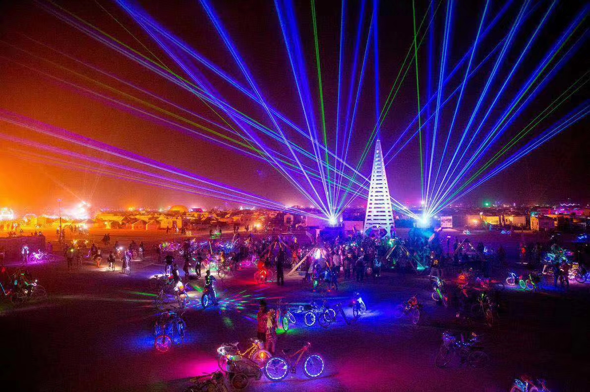 用高亮度和多色彩的激光打出多束交叉的光束,在交織過程中激光的顏色可切換變化,如明亮多采的“光網(wǎng)”一般。這種“光網(wǎng)”手法簡單,但在夜空中的效果非常好,深受客戶的喜歡,使用率高。該手法適應(yīng)于室內(nèi)室外各種場合,一般在空中施放過多層煙霧之后,打出此“光網(wǎng)”,其效果更佳,很容易調(diào)動場上激動的情緒,將場面推向高潮。
