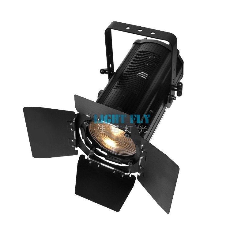 第四款LED聚光燈,在演播室、大型會議室多功能廳、劇院禮堂比較常見的一款燈具。采用COB LED光源,結合自身的菲涅爾透鏡,光強充沛,光效在15米左右,光源瓦數越高,光效距離更遠。
