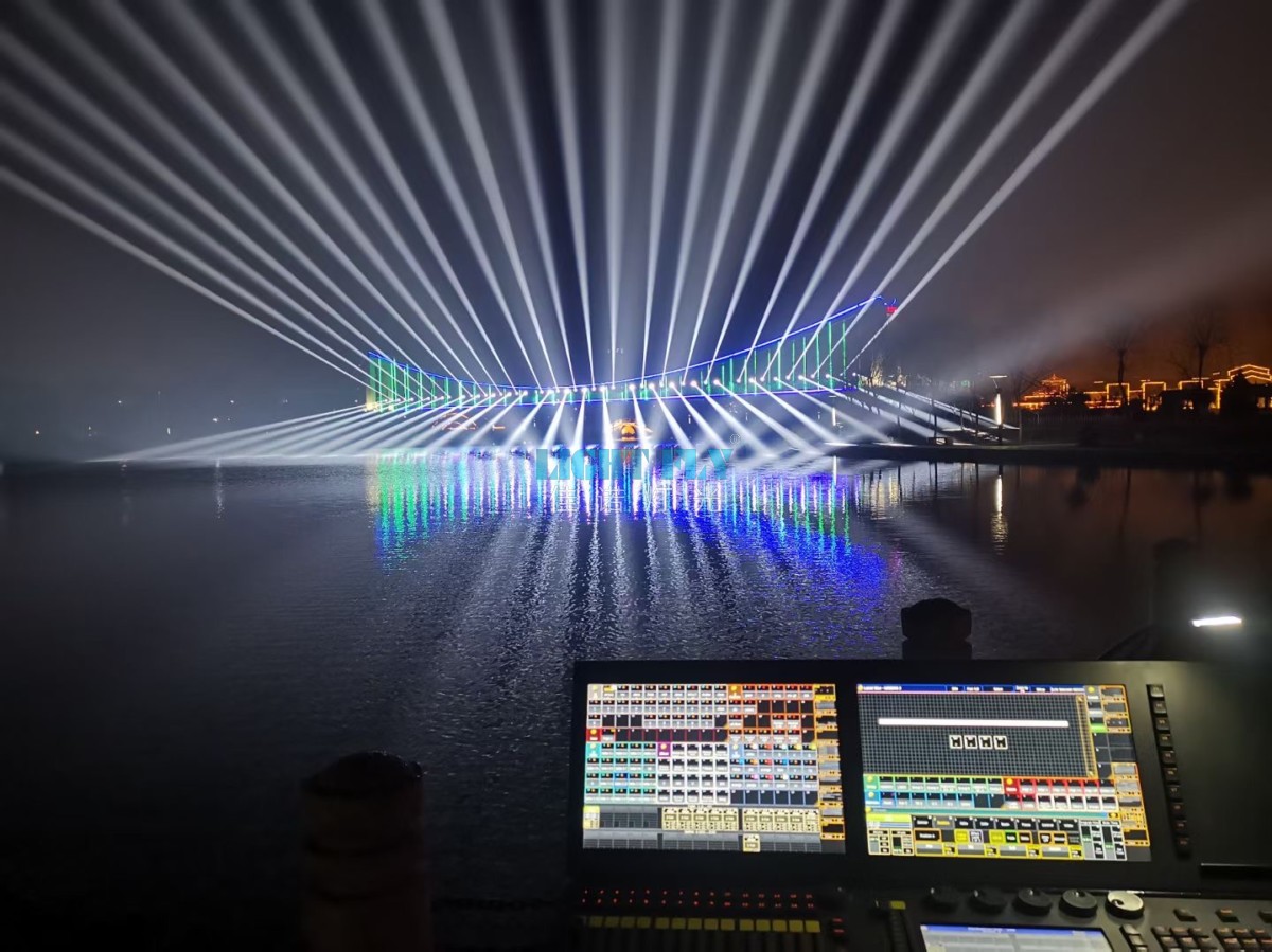 四臺(tái)80W全彩地標(biāo)激光燈與50臺(tái)380W防水光束燈點(diǎn)亮了西橋古鎮(zhèn)夜晚的燈光秀,燈光師采用MA2控制臺(tái)來(lái)編程光束燈,美輪美奐的棱鏡效果與絢麗的激光秀得到了游客們的喜歡,都紛紛拍照留念,廣州佳諾燈光設(shè)備有限公司是一家十二年從事智能化演藝燈光研發(fā)、生產(chǎn)、銷售、服務(wù)于一體的國(guó)家高新技術(shù)企業(yè)。其自主品牌【佳諾燈光LIGHT FLY】產(chǎn)品涵蓋專業(yè)舞臺(tái)燈光、LED演藝照明,文旅亮化等領(lǐng)域,廣泛應(yīng)用于劇院、體育場(chǎng)館、電視臺(tái)及各種演出場(chǎng)所。